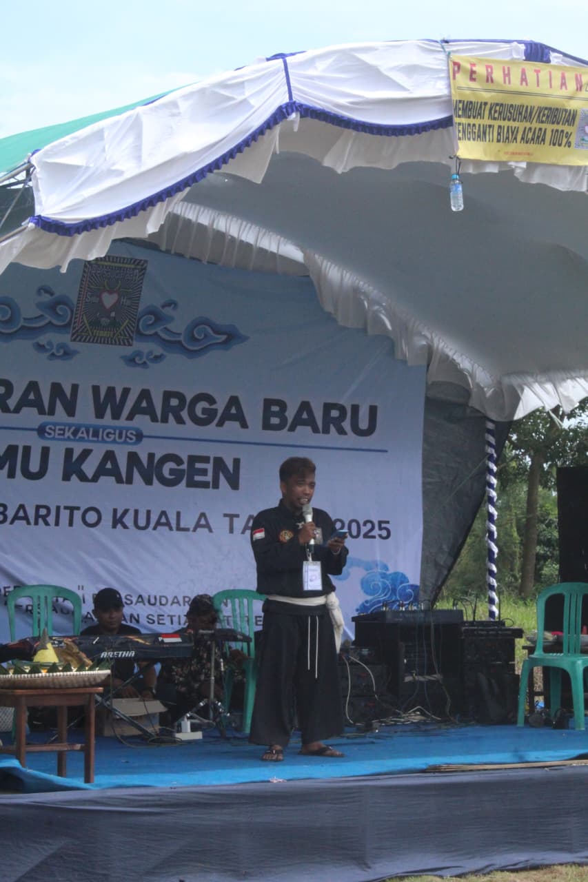 Persaudaraan Setia Hati Terate (PSHT) Cabang Barito Kuala (Batola) gelar Tasyakuran Warga Baru 2025, di Desa Karang Buah, Kecamatan Belawang, Kabupaten Barito Kuala, Minggu (31/08/2025).