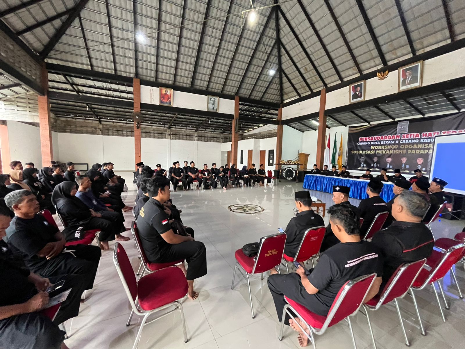 Pengurus Pusat Persaudaraan Setia Hati Terate (PSHT) bekali wawasan (workshop) seputar mekanisme tata kelola Parapatan Ranting di Padepokan PSHT Cabang Bekasi Kota, Minggu (18/01/2026).